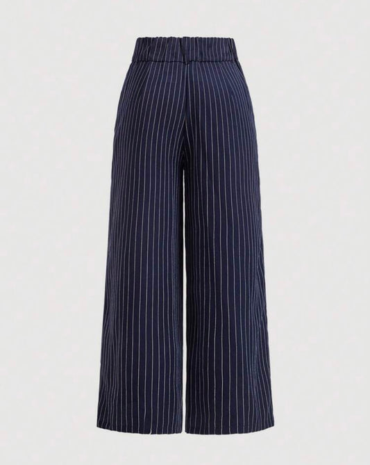 ピンクストライプのワイドレッグルームパンツ(コントラストウエスト付き)