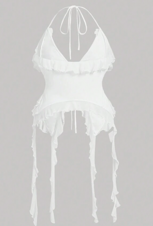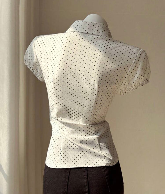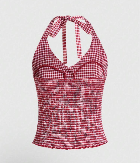 Blue Gingham Ruffle With Puff Sleeves Shirt
