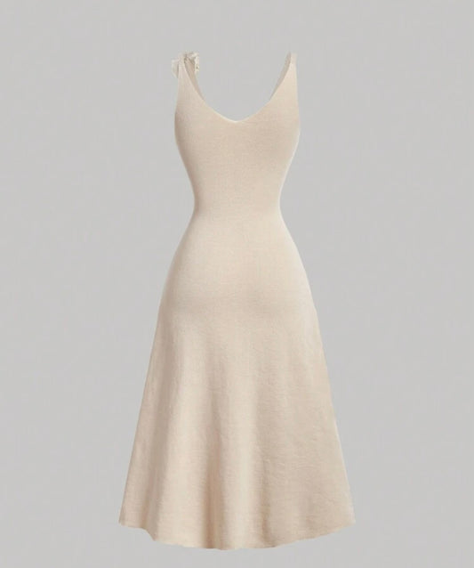 Cream Knit Long Dress With 3D Floral